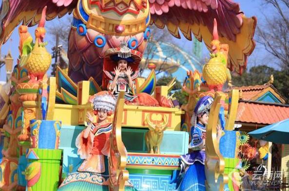 著名舞蹈藝術家楊麗萍老師邀全國游客共赴七彩云南,春節期間,由楊老師任總編導的作品大型原生態歌舞集《云南映象》之“鼓舞”落地七彩云南歡樂世界,演員們用昂揚的舞姿展示出七彩云南各民族團結奮進的震撼與蓬勃向上的力量,讓全國游客感受到云南濃濃的節日氛圍。