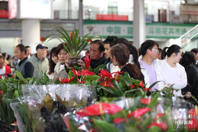 2024年春節期間,位于昆明市呈貢區的亞洲最大鮮切花交易市場,鮮切花銷量持續走高。據統計,2月9日至2月16日,昆明斗南花卉市場鮮切花對手交易總量為28452.3萬余支,交易總額達19661.46萬元。