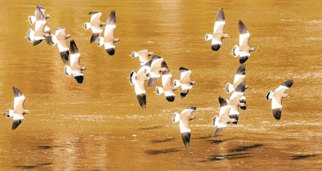 近日,上百只灰頭麥雞現(xiàn)身瀘水市六庫城區(qū)的怒江岸邊,它們時(shí)而展翅翱翔,時(shí)而緊貼著江面疾飛,時(shí)而停留在江岸嬉戲覓食,它們已然成為一道美麗的風(fēng)景。