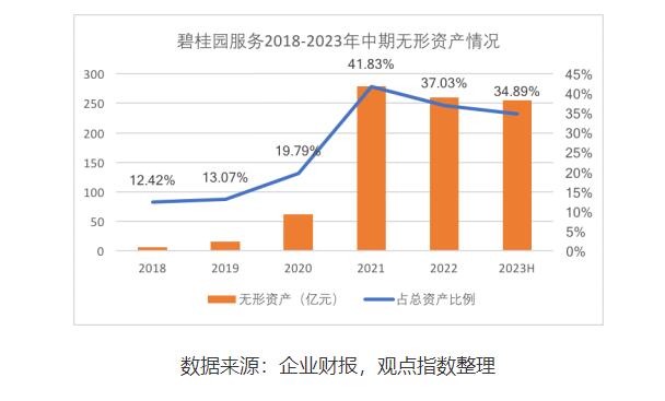 2022年,多家物管企業(yè)出現(xiàn)大面積無形資產(chǎn)減值,并購帶來商譽的激增也成為碧桂園服務(wù)后來業(yè)績受影響的重要因素。