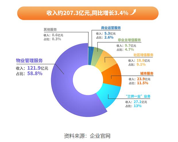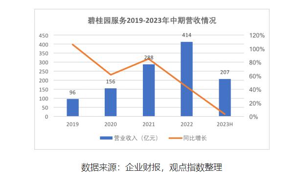 財報顯示,碧桂園服務(wù)2023年中期收入約207.3億元,同比增長3.4%,收入規(guī)模比第二名的萬物云高出47.1億元。除基礎(chǔ)物管服務(wù),還形成了包括城市服務(wù)、社區(qū)增值服務(wù)、商業(yè)運營服務(wù)在內(nèi)的五大業(yè)務(wù)體系。