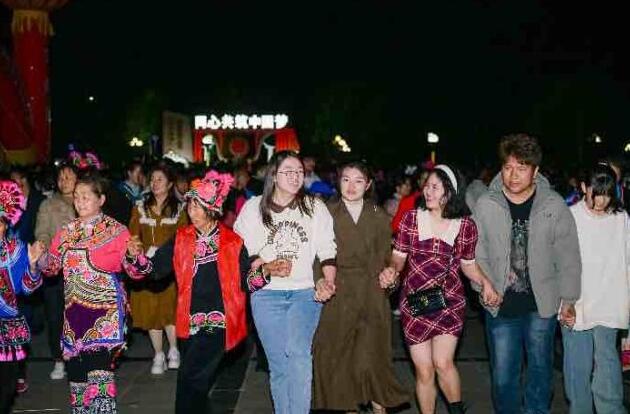 此外,在2月24日晚,永仁賽裝文化廣場上舉行的“萬人打跳、篝火狂歡”群眾性文化活動中,身著彝族服飾的當地群眾與來自全國各地的游客一同圍繞著篝火,手牽手跟隨著歡快的鼓點打跳,廣場成為大家釋放歡樂情緒的海洋。當晚,現場還燃放了30余分鐘的煙火,讓群眾在濃厚的民族節日氛圍中共度元宵佳節,增強了各民族之間的友誼。