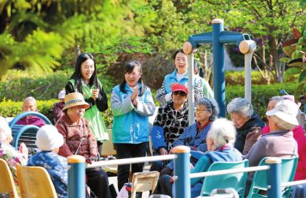 圖為志愿者們在云南省紅十字會養老護理院與老人互動。