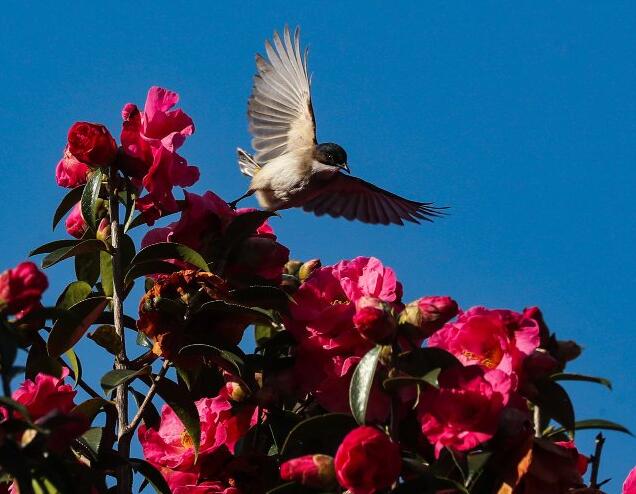 連日來,伴著春日的暖陽與和煦的春風,位于騰沖市區西南的來鳳山國家森林公園茶花基地中,1萬余株山茶花正次第綻放。一朵朵姹紫嫣紅的山茶花,將整個基地裝扮得分外艷麗。靚麗的景致不僅吸引了眾多游客和當地市民前來賞春踏青,也引來了小鳥前來尋香覓食。