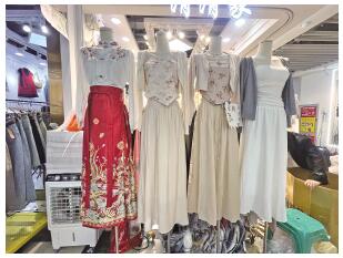 “新中式服裝是今年的流行款,這些服裝大多是盤扣設計,使用刺繡、提花等面料,都是新中式的標志性元素。”一名商戶介紹。