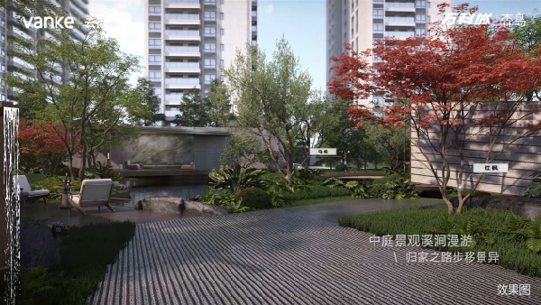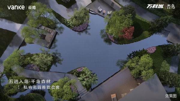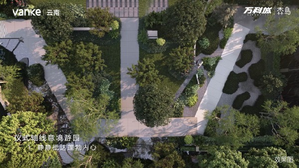 項目雖是現代風格建筑,但整體歸家儀式軸均以古典園林設計手法,打造極盡東方意境的五重院落,我們秉承東魂西技的理念,將古典與現代融為一體,力求為業主帶來尊貴歸家儀式感和森系人居體驗。在山水歸園軸前四景已呈現的基礎上,本次“萬科城·森島二階景觀發布會”展示的則是整個山水歸園軸最為核心的中庭景觀區域“千島森林”與“森意歸林軸”。