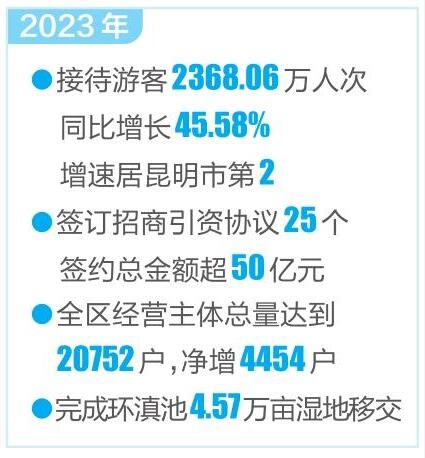 本報訊(見習記者 舒倩) 日前,記者從滇池度假區獲悉,2023年,度假區圍繞昆明市“六個春城”建設,以把滇池沿岸區域打造成“兩山”理論的實踐基地、公園城市建設的標桿示范、世界一流的生態旅游目的地為目標,著力推動高質量發展。度假區全年完成固定資產投資45.47億元,社會消費品零售總額114.9億元,同比增長2.2%;一般公共預算收入14.74億元,同比增長30.2%,外貿進出口總額160.3億元。