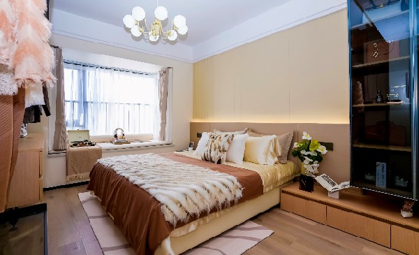 星級(jí)套房主臥,寬闊空間尺度,解鎖更多“隱藏款”生活。整個(gè)房間洋溢著奶茶色調(diào)創(chuàng)造出的寧靜諧氛圍,摩卡色背景柔和地包容著一切,讓你從容的卸去疲憊,拋下煩惱。