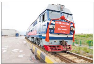 中老鐵路(七甸站—萬象南)“綠色鋁箔”國際貨運列車。云鋁物流供圖