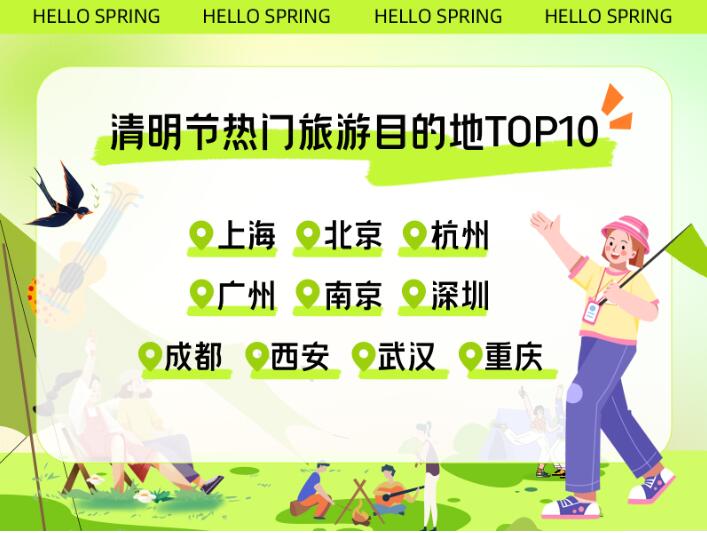 春城晚報-開屏新聞記者從攜程獲悉,截至3月20日,清明節國內旅游預訂最火爆的目的地有:上海、北京、杭州、廣州、南京、深圳、成都、西安、武漢和重慶。