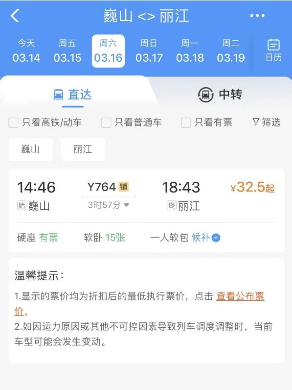 據悉,整個運行時間最快為3小時57分鐘,票價為32.5元。此次運行的車輛為雙層車,是之前刷爆朋友圈的“網紅”列車。