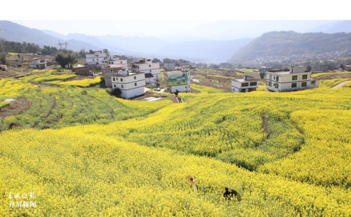 三月繁花次第開,春色滿園關不住。當下,走進昭通市鹽津縣普洱鎮小洞村夷都山,立即置身于一個金燦燦、香噴噴的油菜花海中。1000多畝的梯田花海與美麗鄉村交相輝映,宛如一幅巨大的鄉野油畫,吸引了眾多游客前往賞花踏春。