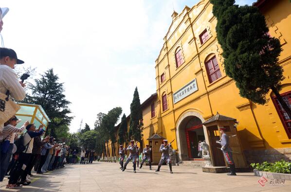 3月26日,游客在陸軍講武堂、昆明老街參觀游玩