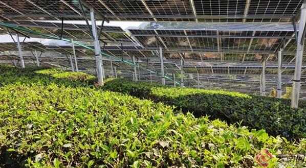 這里是普洱市首批并網的“茶光互補”項目,由中國能建中電工程投資、中國能建云南院參股投資并總承包建設,裝機60兆瓦,每年可生產綠電超過1億千瓦時。項目根據茶園地形,結合茶樹喜陰、喜濕和喜漫射光的特性,創新采用大間距、高支架、組件單排布置光伏板,探索“板上發電,板下種植”的“農光互補”模式,提高土地利用率的同時拓寬了農民的增收渠道,實現生態效益和經濟效益雙贏。