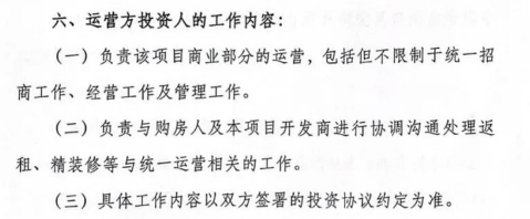 值得一提的是,涌鑫管理人在去年10月公開招募續建投資人的時候,還同步招募過運營方投資人,要求運營方負責該項目商業統一招商、經營、管理以及溝通協調返租、精裝事宜。