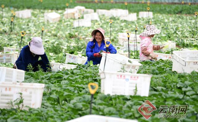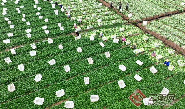 近日,在玉溪市峨山彝族自治縣小街街道小街社區連片種植的20多畝白菜地里,30多位收菜工人正忙著收割白菜、搬運裝車,隨后運往蔬菜批發市場,田間地頭一派熱火朝天的景象。
