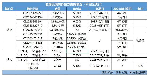 粗略計算(因永續(xù)債利率情況或有變動等)單算2024年內(nèi),雅居樂有約34.26億元本息到期,不過實際情況可能更多。