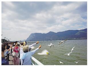 “我這兩天都來海埂公園喂紅嘴鷗,一般到了下午,紅嘴鷗基本都不靠岸了,都只是遠遠地停留在滇池水面上休憩。粗略估計一下,海埂公園這邊的紅嘴鷗差不多有1000多只,過不了幾天就全部飛走了。”家住附近的王先生表示。