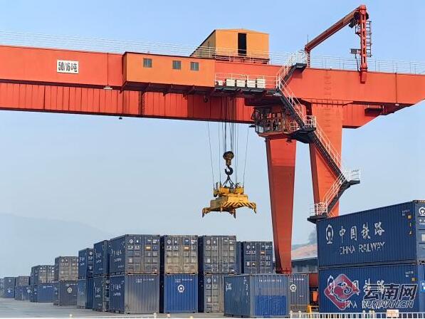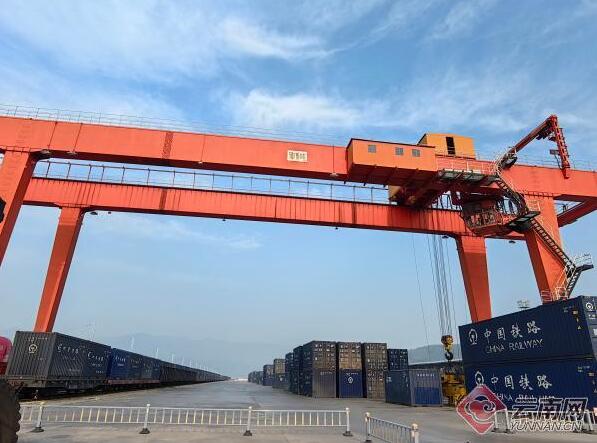 云南網訊(記者 龍彥)嘟嘟嘟……隨著汽笛鳴響,一輛承載著23個集裝箱的火車頭緩緩駛出貨場,這輛運載著數百噸鐵礦石的列車將沿著中老鐵路的軌跡,在4個小時之后到達云南玉溪……4月1日,“萬千氣象看云南”采風團隊一行走進中老鐵路野象谷站貨場,作為中老鐵路玉磨段上貨運量最大的車站,這里繁忙而有序。