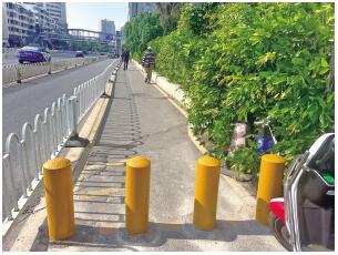 云大醫院2號樓天明視光中心門口通往西昌路的人行道上設隔離柱