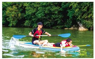 迎著陽光,劃著槳板,在藍天白云下,在清澈的湖水中,乘上槳板,靜靜地穿梭在這片優美的自然風光里,近距離欣賞普者黑獨一無二的喀斯特山水田園美景,盡情感受“人在畫中游”的詩意浪漫,這樣的體驗讓人流連忘返。