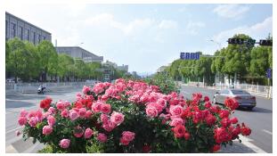 如果說北京路的樹狀月季為市民游客帶來了肆意盛放的驚艷,那么,人民中路的綠化帶景觀更能體現(xiàn)園林設(shè)計帶來的多彩魅力,以“一街一景一特色”理念打造的綠化帶景觀呈現(xiàn)了精致、立體又不失格調(diào)的多元姿態(tài)。