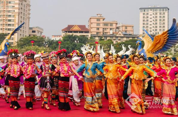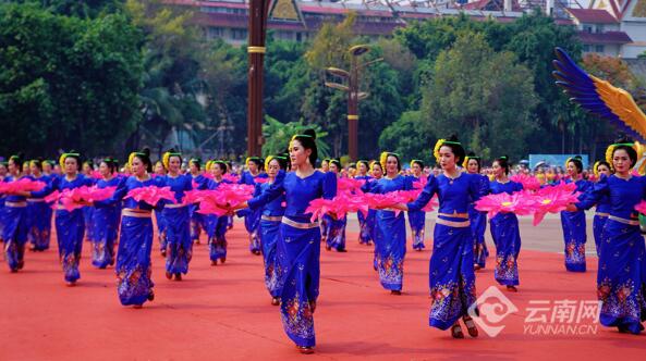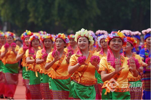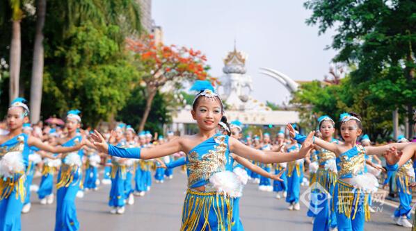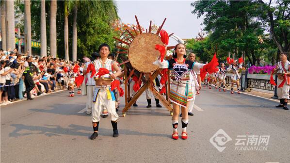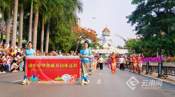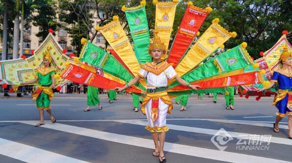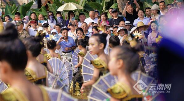 7個展演方陣、48支表演隊伍、19輛美輪美奐的花車經過景洪市主街道,最終抵達潑水廣場。演出隊伍一字排開,邊走邊演,一路上鑼鼓喧天,熱鬧非凡。
