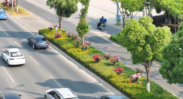 據介紹,官渡區于2016年、2017年在廣福路、國貿路等主要城市道路中央隔離帶內,種植了5318株樹狀月季,栽種品種多為“紅扇”“粉扇”。樹狀月季主要是通過兩次以上嫁接薔薇而來,高度在50厘米到100厘米之間。經過園林工人幾年的精細化管護——澆水、施肥、整形修剪、除蟲治病,如今,國貿路、彩云北路、云秀路的樹狀月季高大、粗壯,高度均在1.5米至2米左右了。