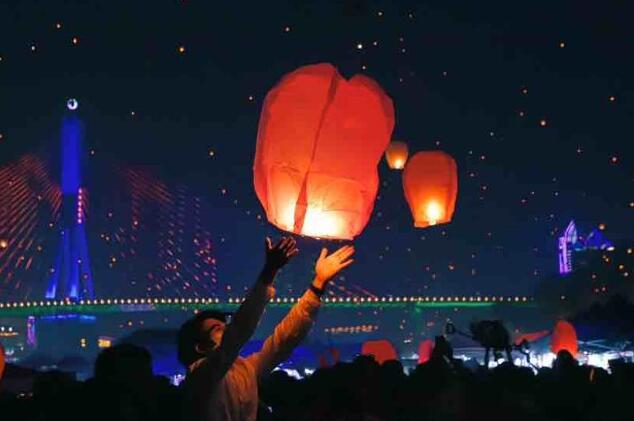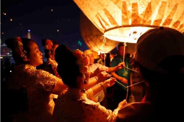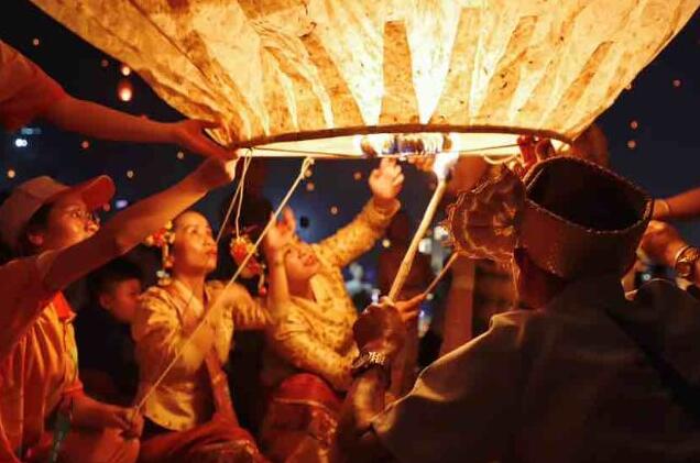 無論是當地人還是外地的游客,在這里相約一起放飛孔明燈,把自己的心愿寫在孔明燈上,或祈福身體健康,或祝愿闔家幸福……傣族同胞也以這個方式迎接傣歷新年的到來。