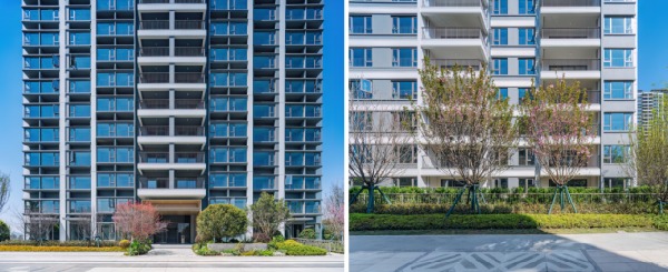 尚未踏入社區,現代簡約外立面已將“美”的初印象送入了眼簾。外墻流暢的線條消隱內外邊界,勾勒出藝韻,典雅的建筑外觀,將“臻貴住區”的氣質豐滿地展現了出來。