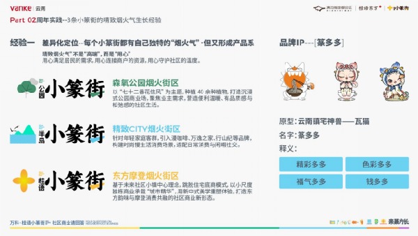 他以“轉(zhuǎn)、賺、篆”三字訣概括小篆街的價(jià)值:“下樓即轉(zhuǎn)生活”、“商戶持續(xù)盈利”、“篆刻美好生活”。通過森氧公園、精致CITY、東方摩登三條差異化街區(qū)的實(shí)踐,小篆街已形成可復(fù)制的“四步成長法”:差異化定位(如森氧公園街區(qū)以“七十二番花信風(fēng)”為主題打造沉浸式公園商業(yè))、剛需+精致業(yè)態(tài)組合(504份問卷調(diào)研匹配居民需求)、社群深度運(yùn)營(七彩生活研習(xí)社2年300場活動)、全周期商戶扶持(從簽約到經(jīng)營的數(shù)據(jù)分析與活動引流)。