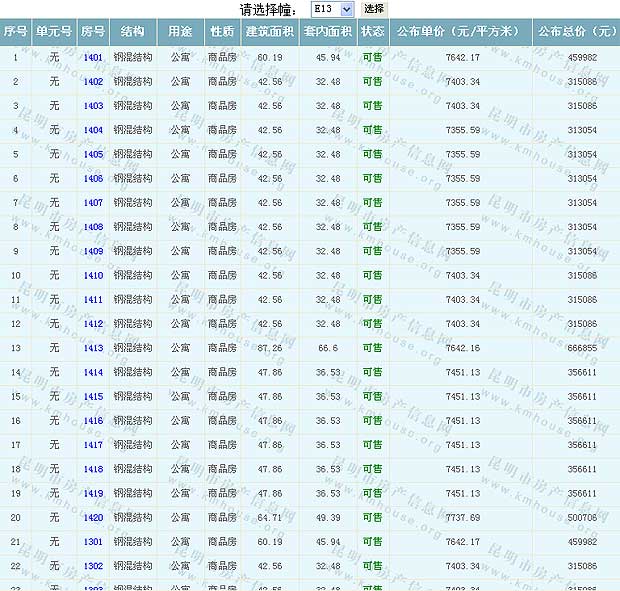 奧宸橙郡二期E1-E3幢準售房源及房價