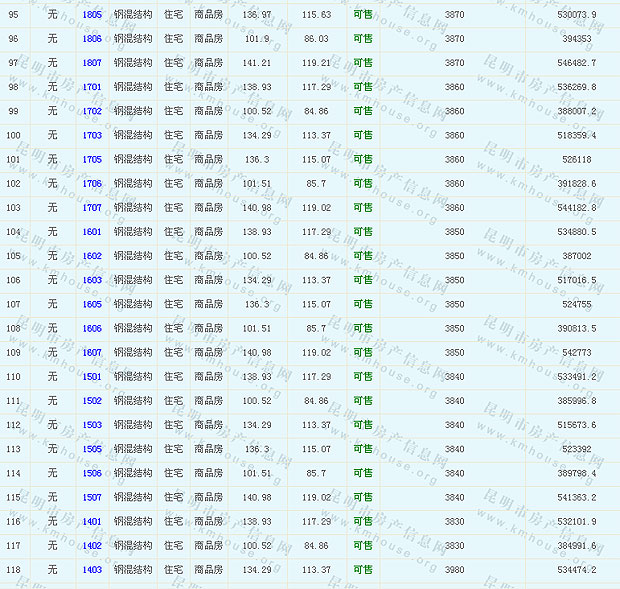 春城慧谷(A2地塊)3、15幢準售房源及房價