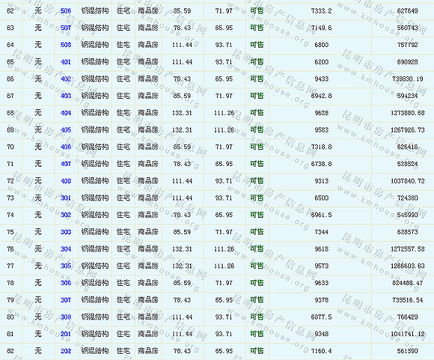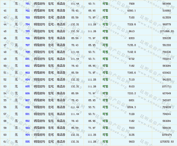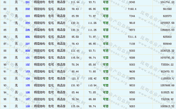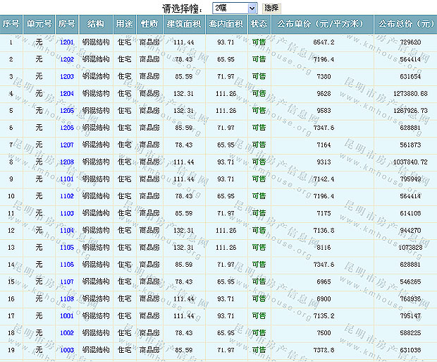 根據云南省物價局關于發布《云南省商品房銷售明碼標價實施細則(試行)》的通知,現將該項目商品住房的準售房源及每套房屋價格向社會公布,房地產開發企業應嚴格按照公布價格,商品房銷售明碼標價實行一套一標。商品房經營者應當對每套商品房按照建筑面具進行明碼標價,否則,房產登記機關不予登記備案。準售房源及房價信息如下: