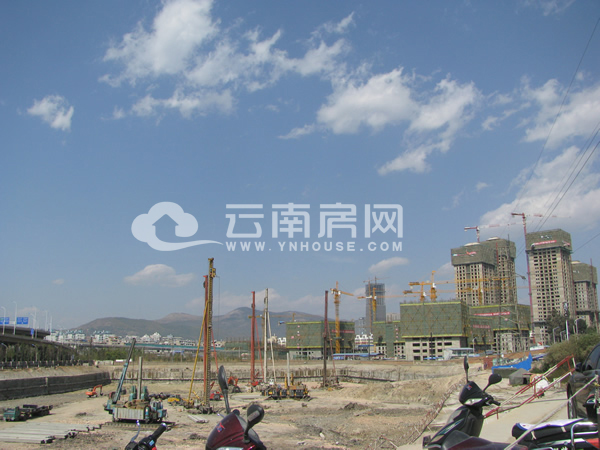 禧瑞都施工現場,遠處在建的是溪畔麗景項目