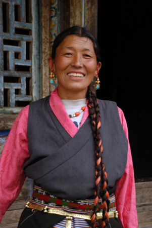 藏地按習俗按語言按歷史沿革,一般分衛藏(以拉薩為中心向西輻射的藏區)、安多(青海、甘南等地)、康巴(四川甘孜阿壩、西藏昌都等地)。有安多藏裝,自然就有拉薩藏裝。相比起其他藏區飛揚的個性,拉薩只能用“平庸”一詞來形容,也許正因為這樣,它才成為平衡點,成為兼容并包,成為中心。拉薩藏裝是我們通常熟悉的樣式,與安多藏裝兩級發展、對比強烈。如果說安多藏裝意味著野性,拉薩藏裝便代表著優雅。舊時有所謂的“拉薩小姐”,即指穿著拉薩藏裝款款而來、時髦嬌貴的藏族女性。她們一般都接受過西式教育,家中一應用度均來自外國,皮膚白皙,談吐不俗。美可以是張揚的肆意的,優雅卻必須約束。體現在服飾上,拉薩藏裝的特點是貼身,裊娜,顯身材。當然你也必須為這份優雅付出收斂的代價,有時甚或是痛苦的。