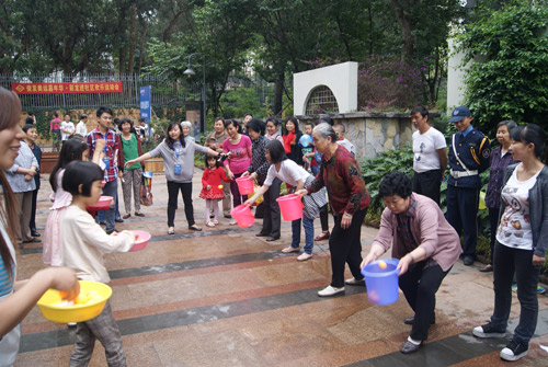 很多暑期放假的小朋友由家長陪伴來到活動現場,另外也不乏晨練的爺爺奶奶圍觀參與,活動設置兩個組別,分別是“歡樂家庭”和“快樂精靈”。“歡樂家庭”以家庭形式參與“齊心協力”“乒乓接力”“反彈入筐”等趣味活動;“快樂精靈”以個人形式參加“爭分奪秒”“正話反說”等趣味活動。歷時兩個小時參與活動的人數180有余,有的家庭和個人參加了數個活動且都獲得了名次,兌獎時左手一提右手一包洋溢著快樂的笑容。