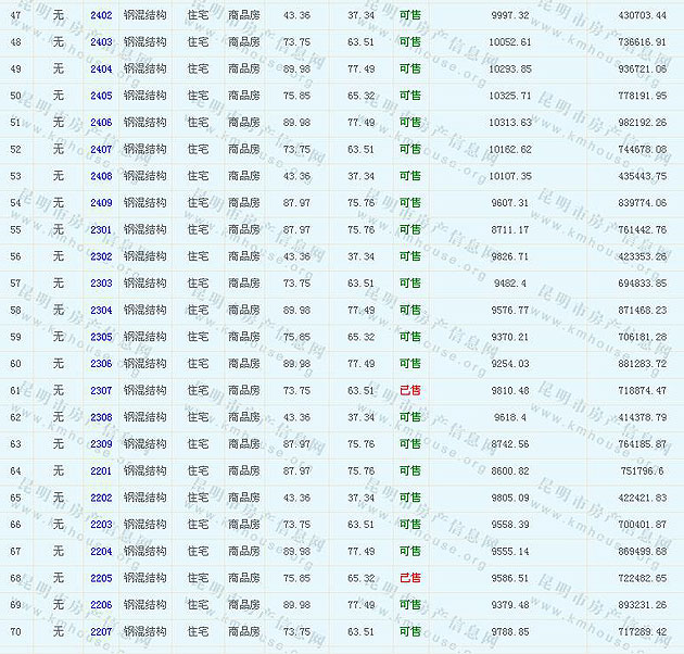 根據(jù)云南省物價局關于發(fā)布《云南省商品房銷售明碼標價實施細則(試行)》的通知,現(xiàn)將該項目商品住房的準售房源及每套房屋價格向社會公布,房地產(chǎn)開發(fā)企業(yè)應嚴格按照公布價格,商品房銷售明碼標價實行一套一標。商品房經(jīng)營者應當對每套商品房按照建筑面具進行明碼標價,否則,房產(chǎn)登記機關不予登記備案。準售房源及房價信息如下: