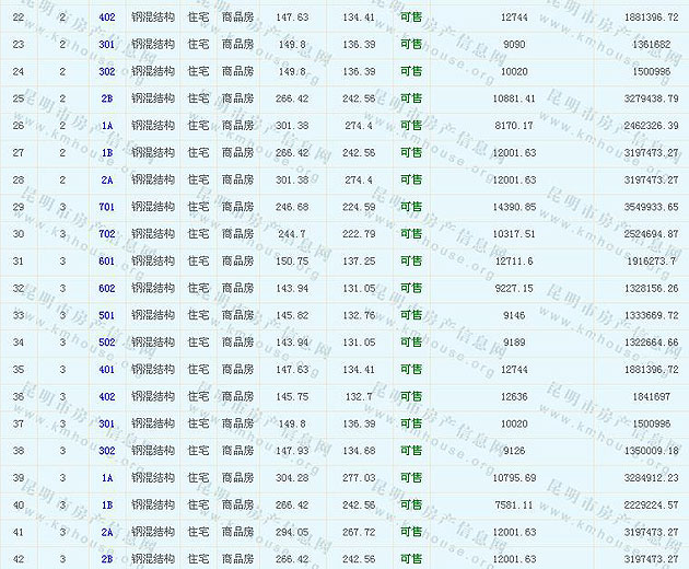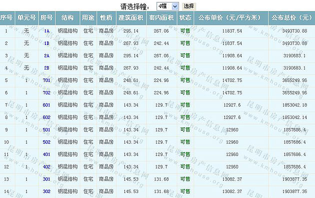 滇池湖岸花園一期住宅(公園1903)準(zhǔn)售房源及房價