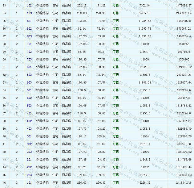 滇池湖岸花園一期住宅(公園1903)準(zhǔn)售房源及房價(jià)