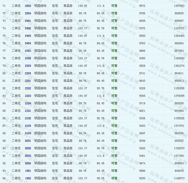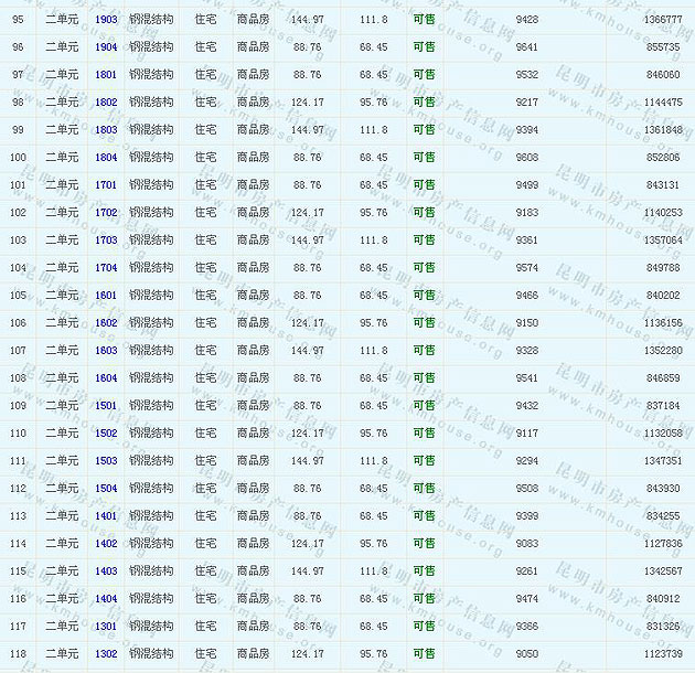 南窯鑫都韻城Ⅰ商品房準(zhǔn)售房源及房價(jià)公示