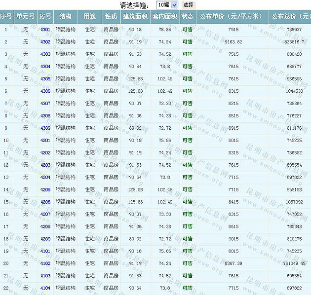 碧雞名城9棟10棟準(zhǔn)售房源及房?jī)r(jià)公示